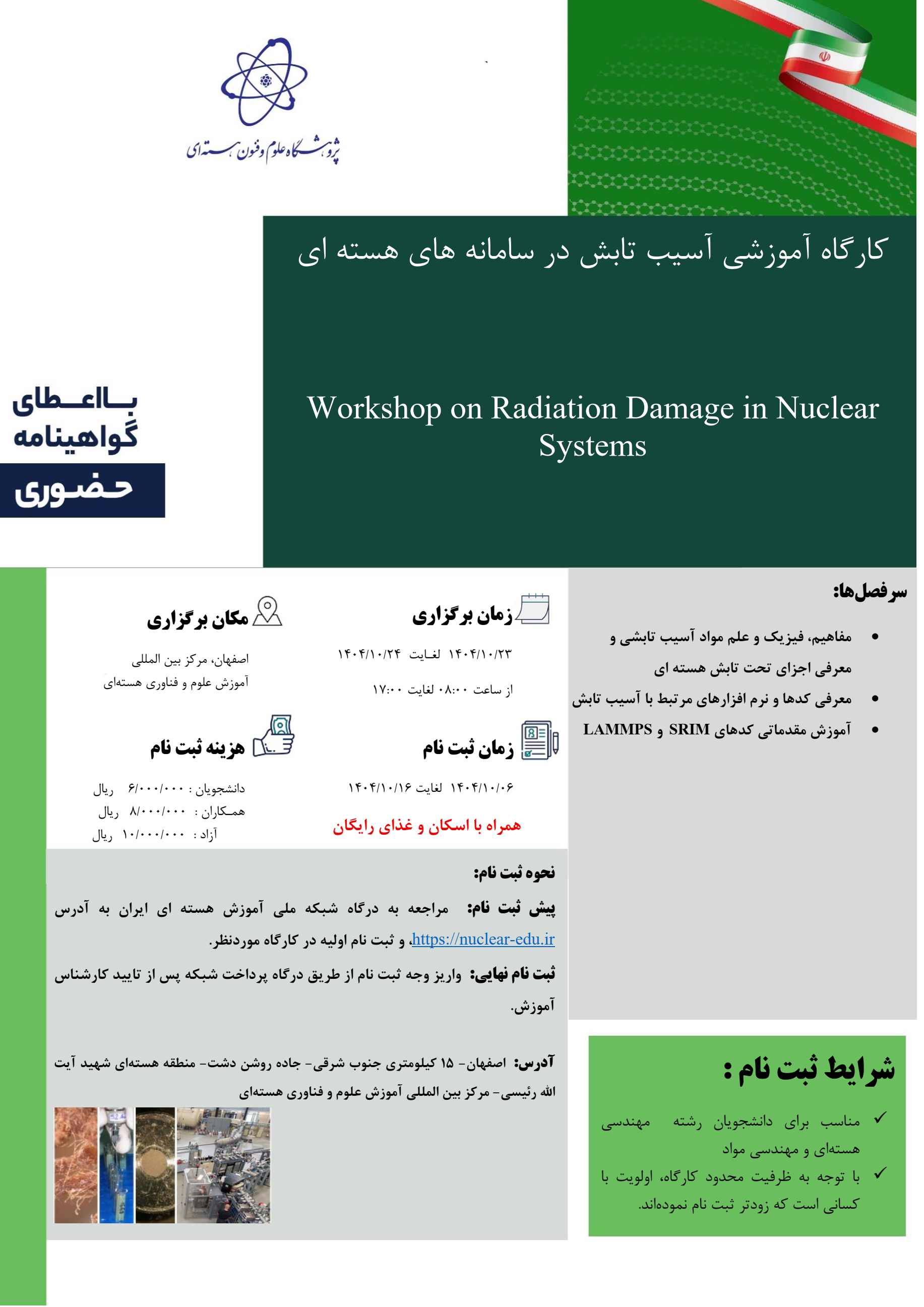 کارگاه آموزشی آسیب تابش در سامانههای هستهای